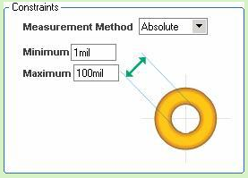 该规则用于设置导孔的内直径大小。可以指定导孔的内直径的最大值和最小值。